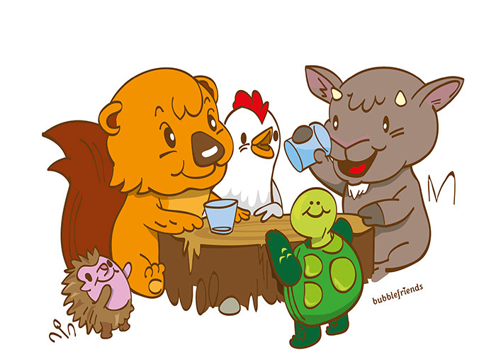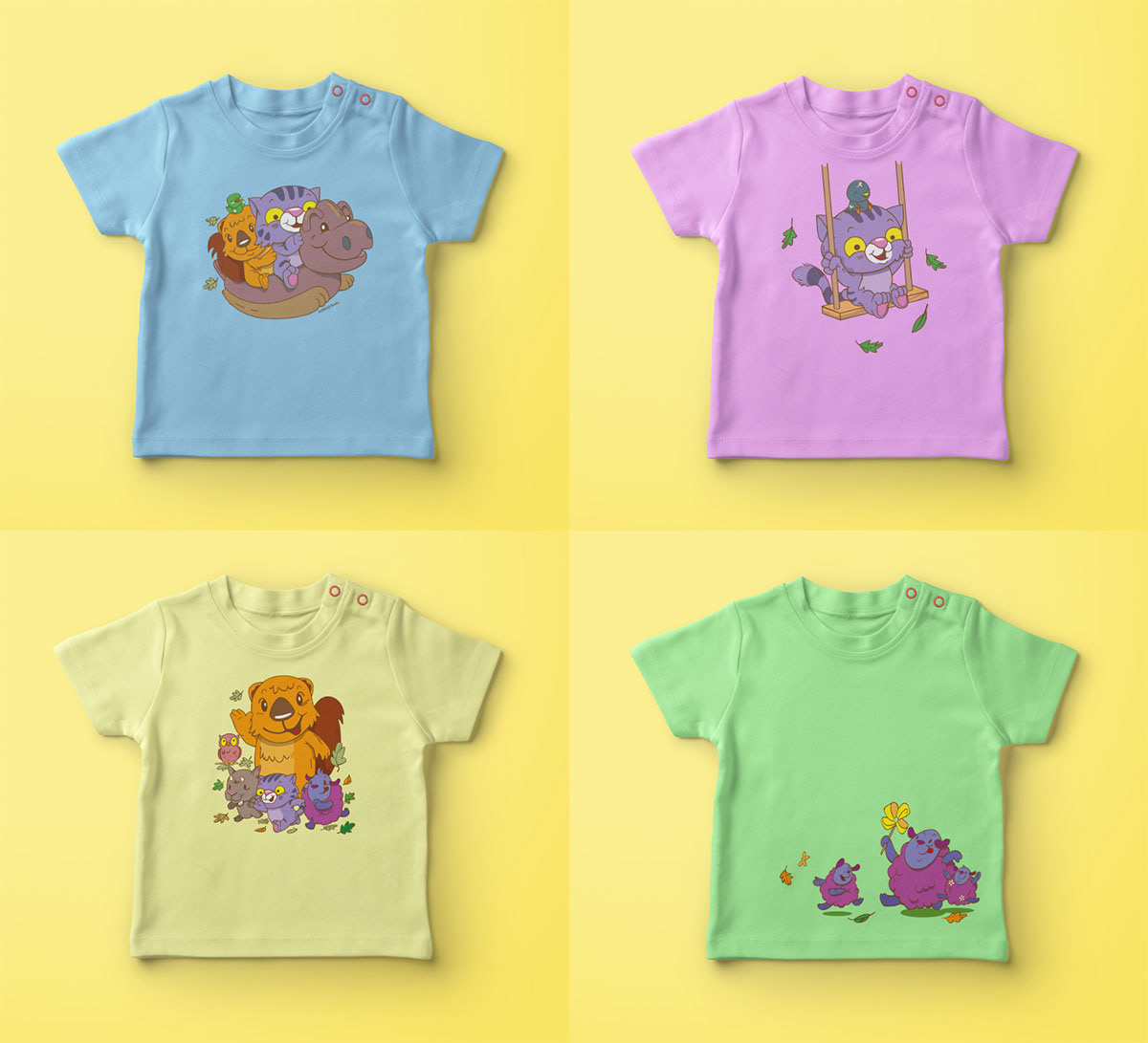 Symphatiefiguren für einen Wildpark. Otter, Ziege, Wildkatze und Schaf. Nett und freundlich. Zielgruppe sind Kinder von 2-5 Jahren.